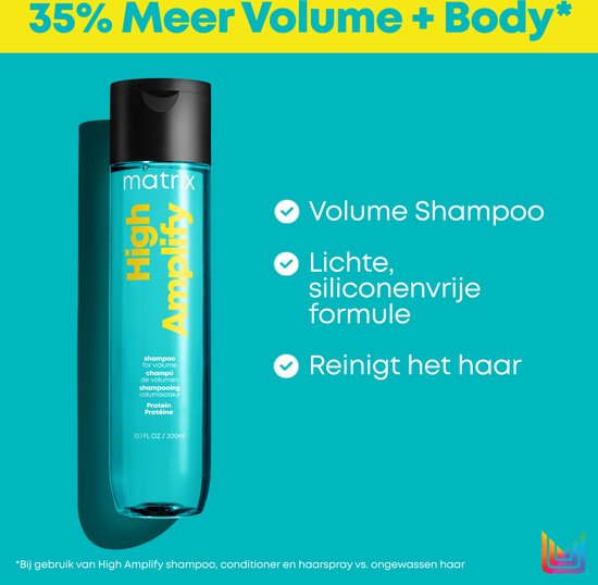Matrix Total Results High Amplify Protein Shampoo Reinigt en helpt de structuur van fijn futloos haar een boost te geven voor langdurig volume Speciaal voor fijn futloos haar Gebruik Breng aan op nat haar laten schuimen en uitspoelen Breng vervolgens High Amplify Conditioner aan