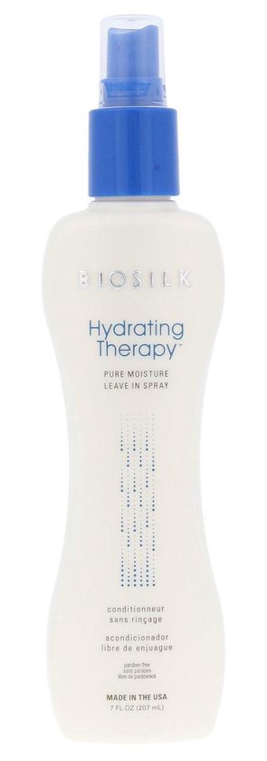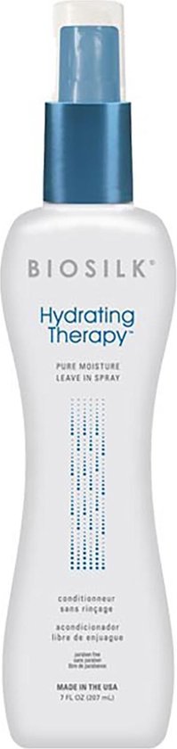 Biosilk Hydrating Therapy Pure Moisture Leave In Spray Deze leave in spray beschermt het haar tegen uitdroging en pluis doordat het de schubbenlaag sluit Deze spray beschermt het haar tegen UV stralen en schadelijke invloeden van buitenaf en zorgt voor een ongelooflijke glans in het haar De spray is vrij van sulfaten en parabenen Gebruik Spray de leave in spray op schoon haar en style zoals gewenst