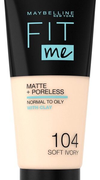 Maybelline New York – Fit Me Matte + Poreless Foundation – 104 Soft Ivory – Medium Dekkende Foundation met Matte Finish voor de Normale tot Vette Huid – 30 ml