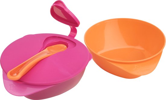 Tommee Tippee Explora Feeding Bowls + lid & spoon-oranje/roze
