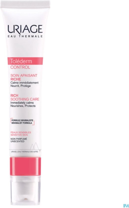 De Toléderm Control Rich is speciaal ontwikkeld voor de gevoelige huid. Dit product is verrijkt met o.a. Algenpolyuroniden, Thermaal Water en Glycerine. Glycerine hydrateert de huid intensief. De Algenpolyuroniden en het Thermaal Water kalmeren de huid onmiddellijk en langdurig. De romige textuur voedt de huid onmiddellijk en langdurig. Het product is parfumvrij.