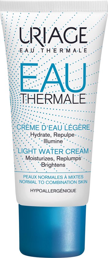 Uriage Eau Thermale CrA me DEau LA c gA re Dompel de huid onder in een heus Thermaal Bad De luchtige textuur van deze crA me versmelt heerlijk met de huid en voorziet haar van zijn unieke hydraterende complex met drievoudige werking Herstelt de hydratatie van de huid Zorgt voor een optimale onafgebroken hydratatie van de opperhuid Herstelt de barriA refunctie en voorkomt dat de huid uitdroogt De perfect gehydrateerde huid is weer fris en soepel De teint straalt en de huid is als het ware opgevuld Gebruik s ochtends enof s avonds op de zorgvuldig gereinigde huid van het gehele gezicht aanbrengen