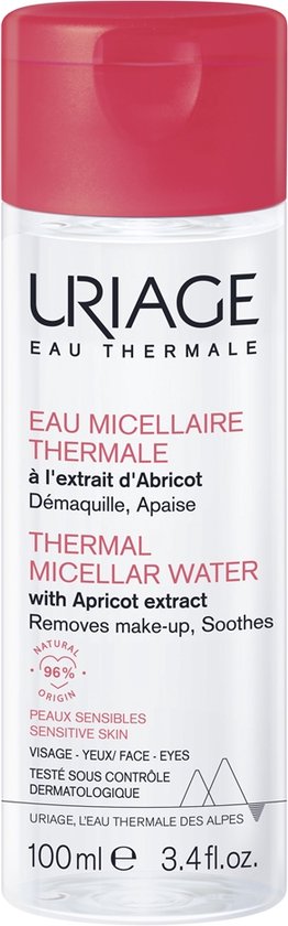 Uriage Thermaal Micellair Water Voor de Gevoelige Huid 500 ml is een micellair water voor het gezicht en de ogen, speciaal ontwikkeld voor de gevoelige huid. Het verwijdert make-up in alle zachtheid, reinigt en verzacht. De formule bevat sterk reinigende micellen en hydraterend Thermaal water van Uriage, met verzachtende en anti-irriterende eigenschappen.De zachte niet-ionische oppervlakteactieve stoffen in de micellen werken als magneten om make-up en onzuiverheden op te vangen. De formule is verrijkt met abrikozenextract voor zijn verzachtende eigenschappen. De huid is schoon en helder, soepel en plakt niet. 96% van de ingrediënten is van natuurlijke oorsprong.Dermatologisch en oftalmologisch getest.Niet comedogeen. Gemaakt in Frankrijk.
