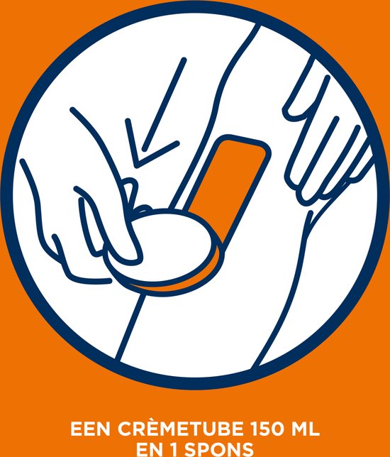- INHOUD: Deze verpakking bevat 1 creme tube 150ml en 1 spons.