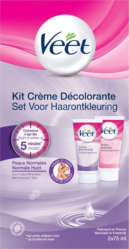 Veet Set Voor Haarontkleuring – Gezicht en Lichaam – Normale Huid – 2 x 75ml