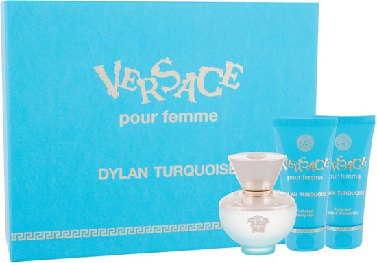 Versace Dylan Turquoise pour Femme Giftset – 50 ml eau de toilette spray + 50 ml showergel + 50 ml bodylotion – cadeauset voor dames