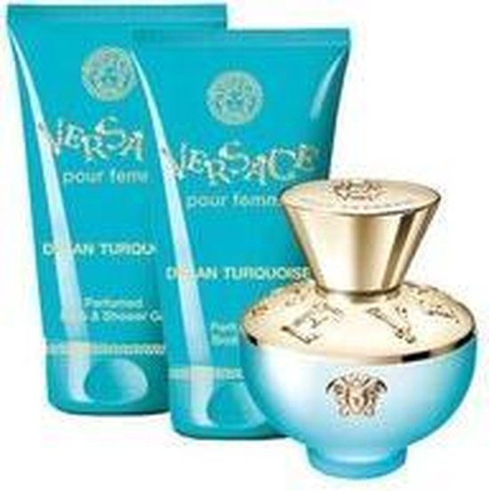 Versace Dylan Turquoise pour Femme Giftset – 50 ml eau de toilette spray + 50 ml showergel + 50 bodylotion – cadeauset voor dames