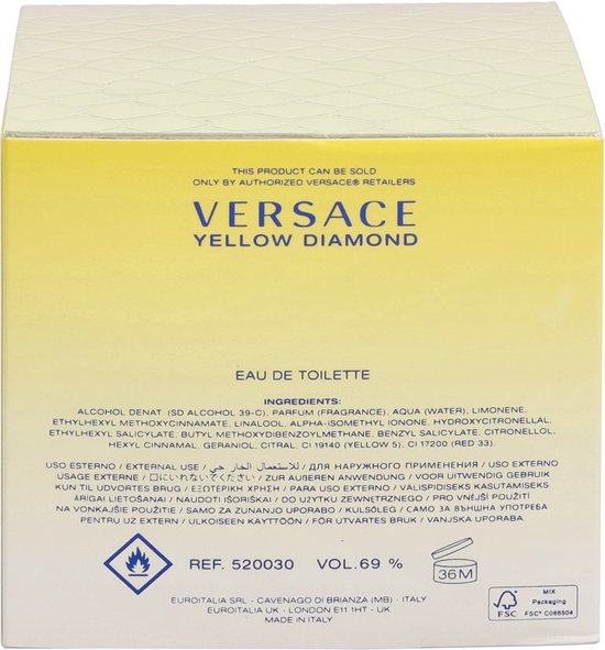 Versace Yellow Diamond is een ultra vrouwelijk parfum in een prachtige flacon. Verfrissende topnoten van citroen, bergamot, neroli en een peren sorbet. In het hart luchtige oranje bloesem, freesia, mimosa en waterlelie. Yellow Diamond sluit in de basis af met amber, muskus en kostbaar Guaiac hout.