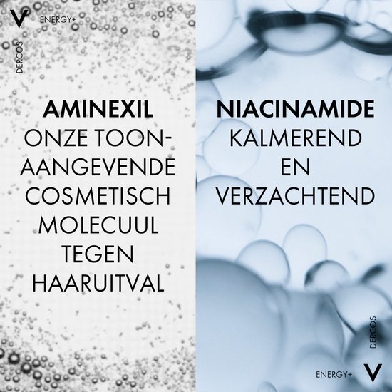 Vichy’s Energie Shampoo bevat Aminexil, een toonaangevend cosmetisch molecuul gepatenteerd door Vichy dat haaruitval door haarbreuk helpt tegengaan.