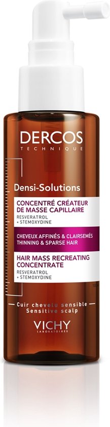 Vichy Dercos Technique Densi-Solutions Concentraat is een geconcentreerde verzorging voor de hoofdhuid die inwerkt op de aanzet, voor zichtbaar sterker en voller haar.Aanbevolen bij dunner wordend haar, een verminderde haardichtheid en een verminderde haarmassa.Zonder siliconen voor een natuurlijk gevoel. RESULTATENKLINISCH BEWEZEN EFFECTIVITEIT Voller haar en een toename van de totale haarmassa na 6 weken.**Klinische test, 79 vrouwen, na 6 weken Onmiddellijk+62% volume*De volumegevende efficiëntie van de shampoo wordt geboost door de balsem voor dikker haar te gebruiken. Na 6 weken Een nieuwe haarmassa**De verzorging van de hoofdhuid verbetert de haarmassa in 6 weken tijd. FFICIËNTIE96% opnieuw dikker haar*91% meer weerstand*88% voller haar*91% volume aan de haarwortel* TEVREDENHEID88% van de vrouwen zou het aanbevelen aan vrouwen die last hebben van een verlies van haarmassa**9/10 vrouwen zijn tevreden** *Zelfevaluatie, 148 vrouwen, na 6 weken gebruik van het volledige Densi-Solutions-gamma**Call back – 109 vrouwen – 6 weken dagelijks gebruik van Densi-Solutions – ItaliëKLINISCH BEWEZEN EFFECTIVITEIT