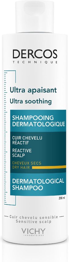 Vichy Dercos Technique Ultra-Kalmerende Shampoo verzacht gevoelige of reactieve hoofdhuid. Na het eerste gebruik vermindert het gevoel van jeuk en tintelingen.Naast een comfortabel gevoel dat tot 48 uur aanhoudt, versterkt deze shampoo de broze haarvezel en verzorgt het uw droge haar.Shampoo voor gevoelige hoofdhuid en droog haar. Hypoallergeen.De kalmerende formule is verrijkt met:- Sensirine: kalmerende eigenschappen- Panthenol: zachter, glanzender, soepeler haar- Glycerine: bekend om zijn hydraterende eigenschappen RESULTATENKLINISCH BEWEZEN EFFECTIVITEIT) Doeltreffend vanaf eerste gebruik *Verzacht de hoofdhuid voor 48 uur *Anti-jeuk.Versterkt de haarvezels.Versterkt de gevoelige haarvezel.** 2 KLINISCHE STUDIESEEN SIGNIFICANT VERZACHTEND EFFECT VANAF HET EERSTE GEBRUIK VAN SHAMPOO*2 DAGEN NA DE TOEPASSINGWAS ER NOG STEEDS EEN SIGNIFICANT VERZACHTEND EFFECT OP HET JEUKENDE GEVOEL EN HET ALGEMENE ONGEMAK*SIGNIFICANT VERZACHTEND EFFECT NA 3 WEKEN GEBRUIK**Klinische studie bij 37 personen met de Ultra-kalmerende shampoo voor droog haar & 43 personen met de Ultra-kalmerende shampoo voor normaal tot vet haar** Instrumentele test na meerdere wasbeurten
