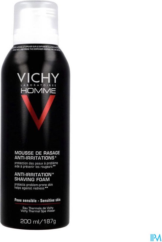 Deze Vichy Homme Anti-Irritatie Scheerschuim is speciaal ontwikkeld voor mannen met een gevoelige huid of huidproblemen zoals ingegroeide haartjes, puistjes door het scheren, etc., of die na het scheren een rode of geïrriteerde huid hebben. De formule bevat een combinatie van calcium, geglycoliseerde Vitamine C en salicylzuur, wat verhitting van de huid voorkomt die kan optreden na het scheren. Verder beschermt deze scheerschuim de hydrolipiden huidlaag en voorkomt het het gevoel van schuren. Uw huid is beschermt en intens gehydrateerd. RESULTATEN:Laat de huid prettig aanvoelen bij: 93%*.Voorkomt verhitting van de huid bij: 87%*en beschermt tegen huidirritatie bij: 85%*. Gehydrateerde huideffect bij: 87%*en zuivert bij: 90%*.*zelfevaluaties bij 20 mannen.