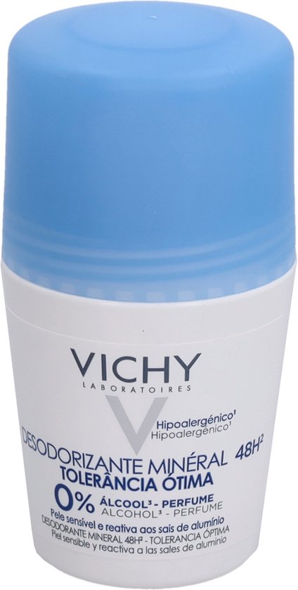Vichy Deo Deodorant Mineral Roll on Gevoelige Huid 50ml Deze deodorant zorgt voor langdurige frisheid tot wel 48 uur Het houdt vieze geurtjes tegen De deodorant bevat geen aluminiumzouten alcohol en parabenen Prima te gebruiken voor de gevoelige huid
