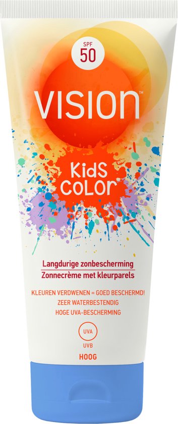 Vision Kids Color SPF 50 Langdurige zonbescherming met geïntegreerde kleurparels. Kleuren verdwenen? Goed beschermd!