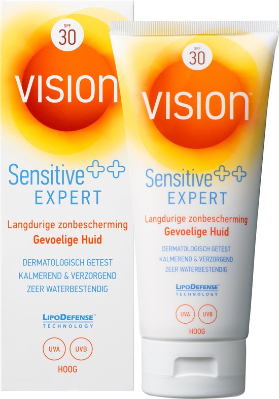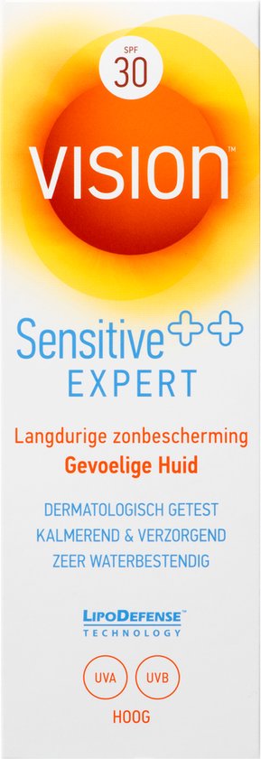 - Met LipoDefense Technology Vision Sensitive++ Expert is speciaal ontwikkeld voor de gevoelige en kwetsbare huid en biedt langdurige zonbescherming tegen schadelijke UVA- en UVB-straling, dankzij de unieke LipoDefense Technology.