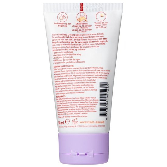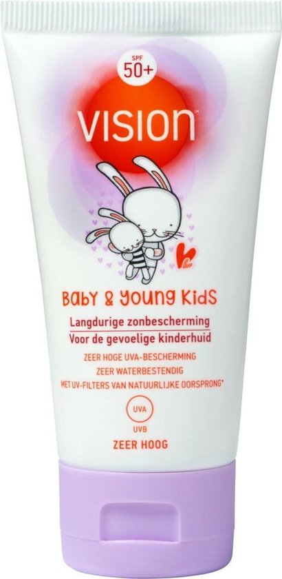 - Vision Baby & Young Kids gebruikt bewust minerale filters voor de kwetsbare, jonge kinderhuid. Op die manier is de huid direct goed beschermd. Wel kan er een witte waas achterblijven.