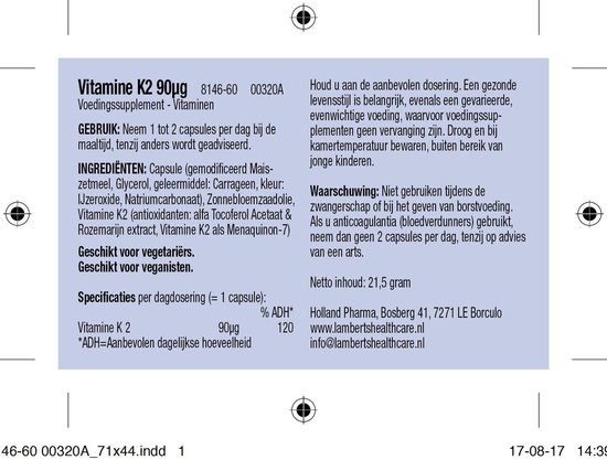 Lamberts Vitamine K2 90 mcg – 60 capsules – Vitamine K – Voedingssupplement