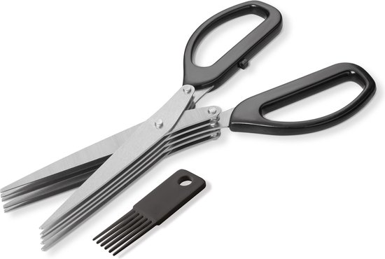 Versnipperen wordt heel eenvoudig met de schaar met vijf knipbladen. De vijf roestvrijstalen bladen knippen moeiteloos door bijvoorbeeld papier. Maar de schaar kan ook worden gebruikt voor het versnipperen van kruiden om bijvoorbeeld het eten te garneren. De grote handvatten zorgen ervoor dat de schaar comfortabel in de hand ligt en makkelijker vast is te houden.