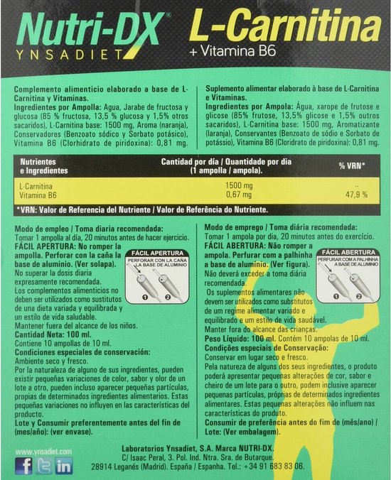 Voedingssupplement Naturtierra Nutri Dx L-carnitine Vitamine B6 (10 uds)