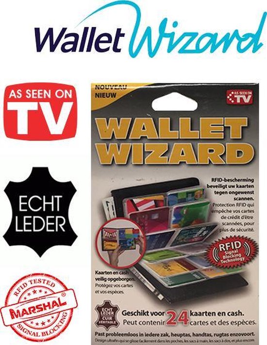 Wallet Wizard 24 Creditcard, Visitekaart En Cashhouder Met RFID Beveiliging Echt Leder – Zwart