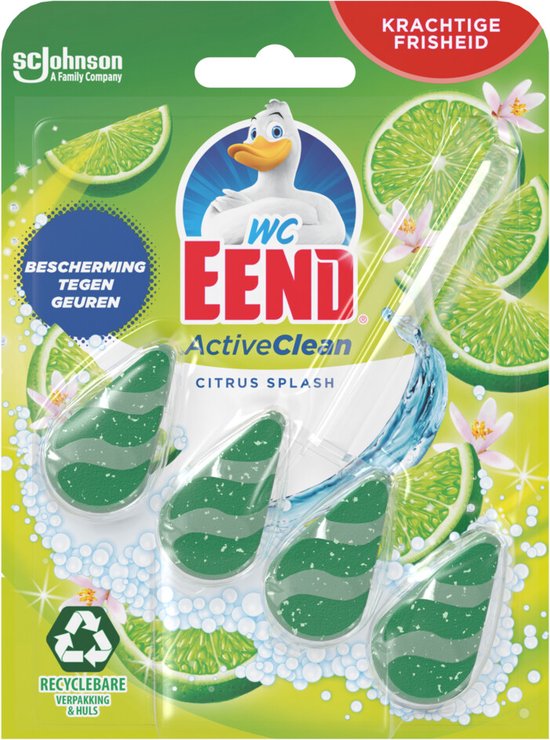WC-Eend toiletblok Active Clean citrus bevat royaal actief schuim en een langdurige geur die helpen uw toilet fris te laten ruiken en er schoon uit te laten zien tot de laatste spoelbeurt.