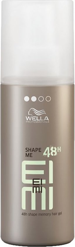 Wella EIMI Texture Shape Me 48H is een gel verrijkt met een memorising polymer complex. Het is hitte geactiveerd dus vorm, föhn en creëer je eigen look. Dit houdt in dat de haargel geactiveerd wordt door warmte. De gel maakt het makkelijk om het gewenste model te creeren. Het resultaat blijft ongeveer 48 uur lang zichtbaar. De EIMI Shape Me Stylinggel is geschikt voor kort haar.