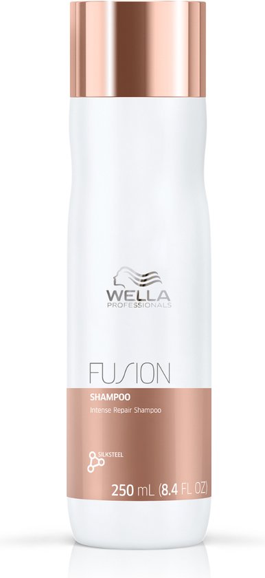 Wella Fusion Intense Repair Shampoo is speciaal ontwikkeld om het haar te herstellen en haarbreuk tegen te gaan. De shampoo is verrijkt met Silksteel Fusion wat is geïnspireerd op spider silk, een van de sterkste vezels in de natuur. De formuele dringt tot diep in de haarvezels door en helpt haarbreuk voorkomen. Zelfs het meest beschadigde haar voelt dankzij Wella Fusion Shampoo weer glad en elastisch aan. Bevat EDDS, gemicroniseerde lipiden en aminozuren.