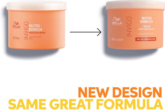 Wella Professionals Invigo Nutri Enrich Mask Droog Haar is een masker dat bedoeld is voor weerbarstig haar. Het masker herstelt dik en beschadigd haar, waardoor het haar er weer gezond uitziet en zacht aanvoelt. Wella Professionals Invigo Nutri Enrich Mask Droog Haar is een lichtgewicht masker dat het haar niet zwaar laat aanvoelen. Het masker zit bordevol mineralen, onder andere Vitamine E, Gojibessen en panthenol. Het haar wordt hierdoor vol vitaliteit gevoedt. Het masker heeft een heerlijke fruitige Muskusachtige Chypre-geur. De Enrich-lijn van Wella is speciaal ontwikkeld voor droog en beschadigd haar.