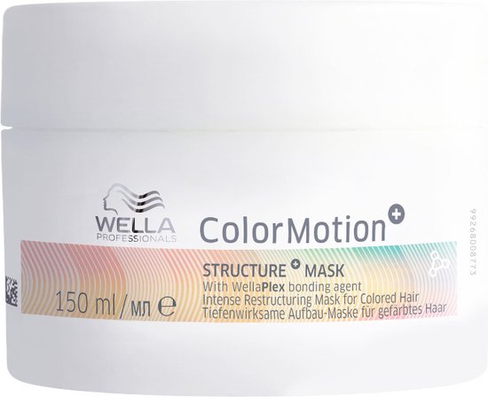 Wella ColorMotion Structure Mask ColorMotion doet meer met je haar dan alleen verkleuring tegen te gaan Regelmatig gebruik van ColorMotion verzorgingsproducten verbetert de kwaliteit van gekleurd haar op drie gebieden die belangrijk zijn voor gekleurd haar Kleurbescherming levendige glans sterker haar Uitstekende haarkwaliteit voor een prachtige haarkleur Dit intensief herstructurerend masker voor gekleurd haar versterkt de haarstructuur geeft glans en langdurige beheersbaarheid Gebruik Gebruik slechts een kleine hoeveelheid Alleen aanbrengen op gevoelige gebieden lengtes en punten Aanbrengen op schoon vochtig haar 5 minuten laten inwerken Zorgvuldig uitspoelen