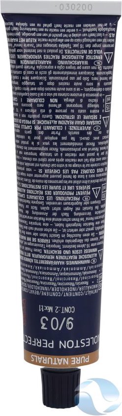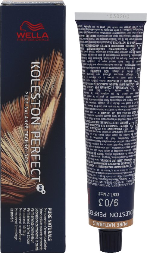 Wella Koleston Perfect Me+ – Pure Naturals 9/03 Very Light Blonde Natural Gold 81648094 DUITSLAND karton @ 1 stuk x 60 ml