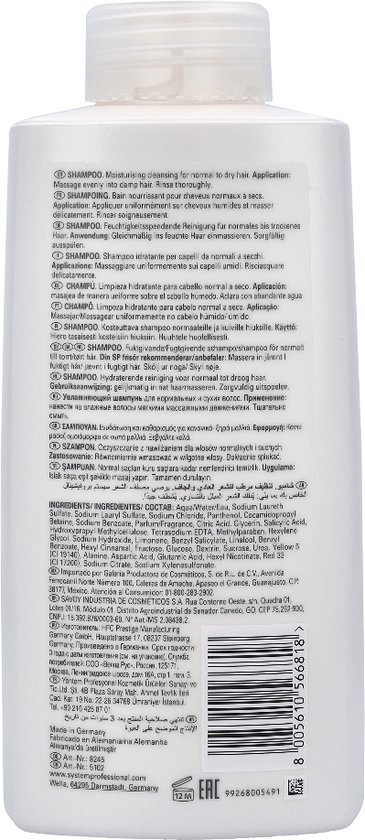 Wella SP Hydrate Shampoo is een shampoo voor normaal tot droog haar die langdurige hydratatie biedt. De shampoo brengt vocht in zonder het haar te verzwaren. Het haar krijgt onmiddellijk vocht en wordt daardoor heerlijk zacht. Wella SP Hydrate Shampoo helpt het haar van binnenuit te herstellen zodat het haar weer flexibel, vitaal en gezond wordt. Dermatologisch getest op huidvriendelijkheid.