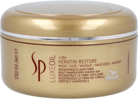 Wella SP Keratin Restore Mask is een intensieve treatment voor het haar die een mix van luxe oliën bevat, namelijk argan-, jojoba- en amandelolie. Deze oliën zorgen ervoor dat het haar van binnenuit wordt verzorgd. Het masker is voedend en zorgt ervoor dat de textuur van het haar drastisch verbeterd. Wella SP Keratin Restore Mask geeft het haar vitaliteit en laat het glanzen. Ook zorgt het masker dat het haar beschermd wordt tegen hitte van stylingtools en tegen invloeden van buitenaf. Het masker is perfect voor zwak, beschadigd en droog haar, maar is geschikt voor alle haartypes.