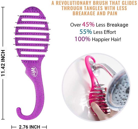 Wet Brush – original detangler – haarborstel voor in de douche – ophanghaak – Glitter Paars