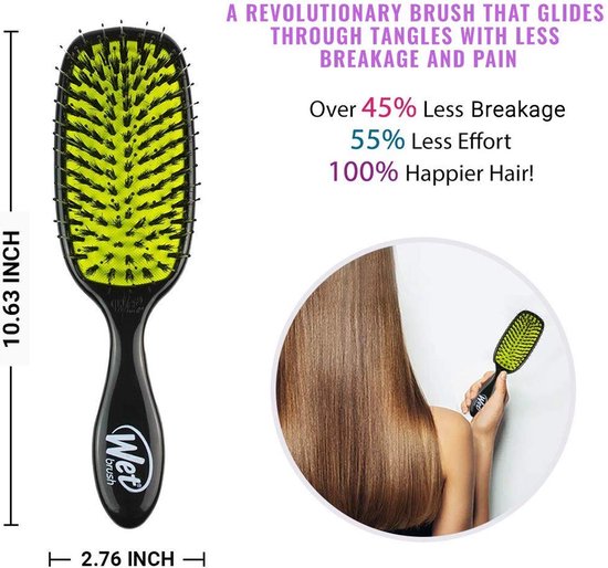 Wet Brush – Shine Enhancer Haarborstel – Ultra-zachte IntelliFlex natuurlijke varkenshaar – Zwart