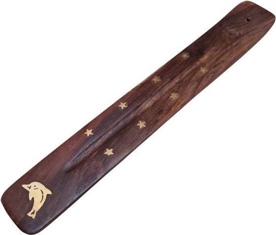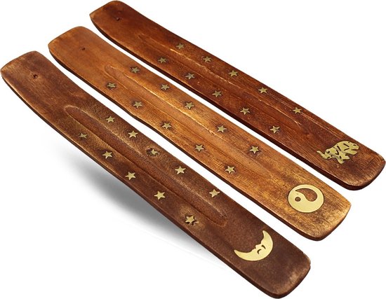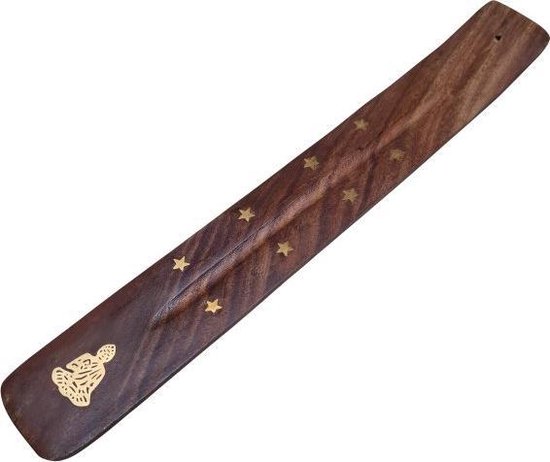 Wierookplankje – Wierookhouder plankje – Bruin met gouden messing – Assorti – Extra dik en stevig