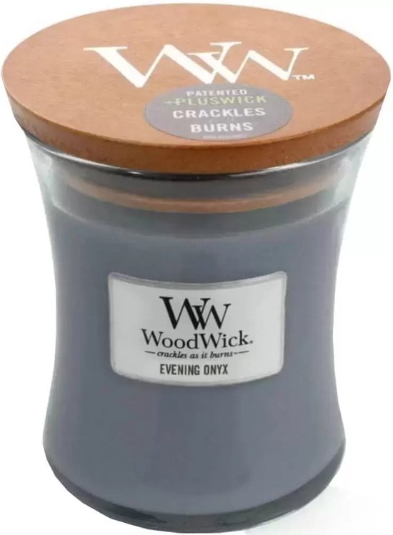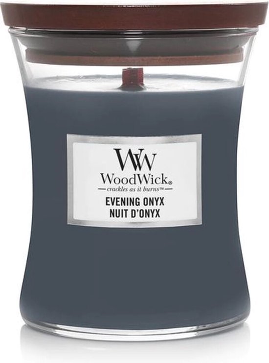 Ontdek de WoodWick Geurkaars Medium Evening Onyx – een betoverende kaars die de ruimte vult met zijn unieke geur en elegante uitstraling.