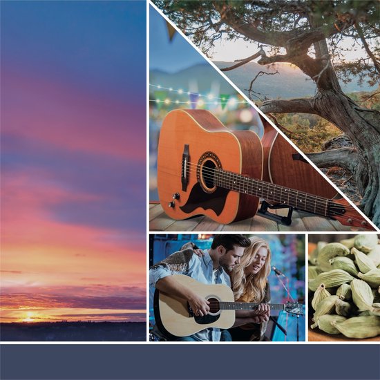 De klanken van livemuziek drijven in de schemering over het festival en brengen geuren van kardemom, aquamarijn en houtnoten met zich mee.