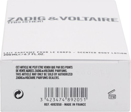 Zadig Voltaire This Is Her Scented Body Lotion Een bodylotion met een sensuele mix van vanille en kastanje treedt in de voetsporen van de rock van sandelhout De perfecte geur voor een onafhankelijke vrouw met een rebelse geest