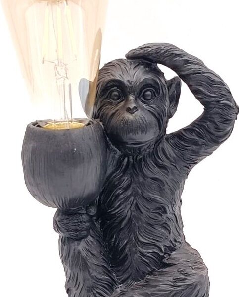 Tafellamp Monkey – Zwart – Incl. Lamp – Werkt op Batterijen – Sfeerlamp – 13x13x19cm