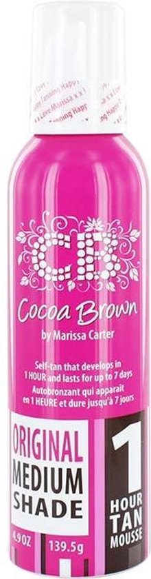 Zelfbruinende mousse in de kleur Original die jouw huid een prachtige zongebruinde kleur geeft binnen 1 uur. Moest jij voorheen twee lagen zelfbruinende mousse aanbrengen om de gewenste kleur te bereiken? Deze Original Tanning Mousse van Cocoa Brown is bedoelt voor de die tan-verslaafden die er maar geen genoeg van kunnen krijgen! Met de Cocoa Brown 1 Hour Tan Mousse Original creëer je op een eenvoudige manier een instant-kleur tot 3 tinten donkerder dan jouw eigen huidskleur, en dat met slechts 1 applicatie. De resultaten blijven behouden tot 7 dagen na het aanbrengen van de mousse. Gebruiksaanwijzing: * Bereid de huid goed voor en zorg ervoor dat als je de huid wilt scheren of waxen je dit ongeveer een dag van tevoren doet. * Scrub de huid zorgvuldig zodat deze helemaal ontdaan is van dode huidcellen voor het behoud van je tan. * Smeer droge plekken vlak van tevoren in met wat bodylotion. * Schud de fles en gebruik altijd de Self Tan Applicator Mitt () of de Velvet Tanning Mitt () voor het aanbrengen van de mousse. * Breng de Cocoa Brown 1 Hour Tan Mousse Original in cirkelvormige bewegingen aan op de huid en werk hierbij van beneden naar boven. Het is belangrijk dat je telkens maar een klein gebied tegelijk behandelt om te voorkomen dat je plekken vergeet. * Gebruik eventueel een make-up kwast om de handen, voeten en het gezicht te kleuren. * Wacht 1, 2 of 3 uur afhankelijk van het gewenste kleurresultaat. Hoe langer je de Cocoa Brown 1 Hour Tan Mousse Original laat zitten, hoe donkerder de kleur. Na 3 uur is het product volledig uit ontwikkeld en wordt hij niet bruiner. Je kunt hem dus ook bijvoorbeeld de hele nacht laten zitten. Cocoa Brown 1 Hour Tan Mousse – Original Shade – 150 ml kopen? Je kunt de Cocoa Brown 1 Hour Tan Mousse Original Shade kopen in de inhoudsmaat 150 ml. Bestel dus nu de Cocoa Brown 1 Hour Tan Mousse Original Shade, dan zorgen wij dat deze snel bij je wordt bezorgd!
