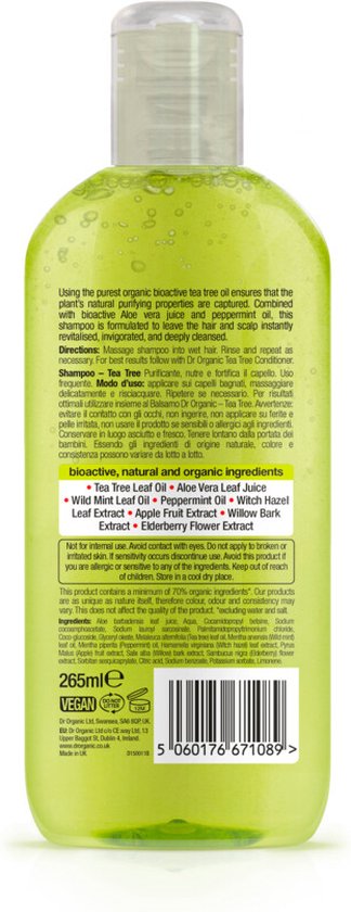 Zuiverende Shampoo Bioactive Organic Dr.Organic Bioactive Organic 265 ml