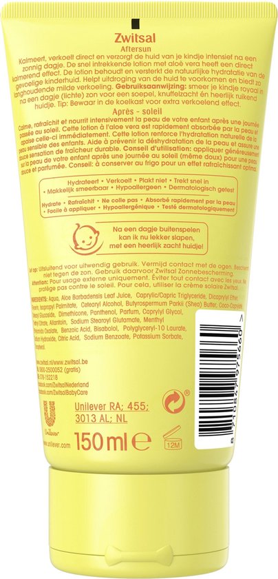• Zwitsal Na ’t Zonnetje Lotion verkoelt en verzacht de gevoelige babyhuid