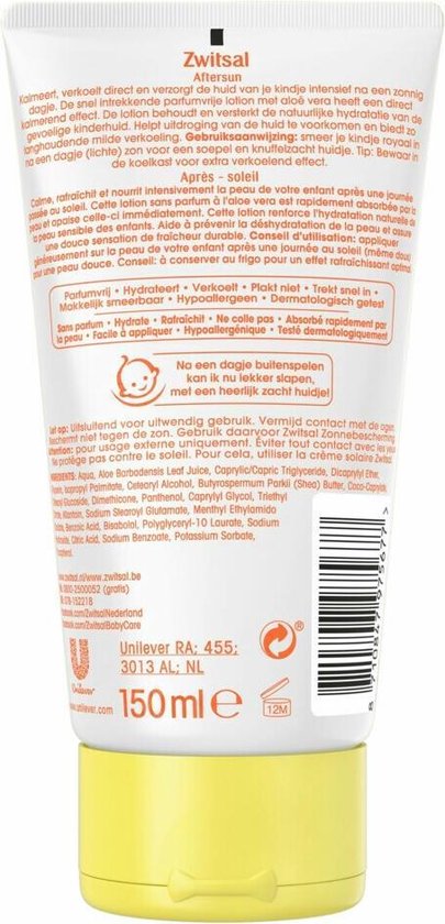 • Zwitsal Na ’t Zonnetje Lotion verkoelt en verzacht de gevoelige babyhuid